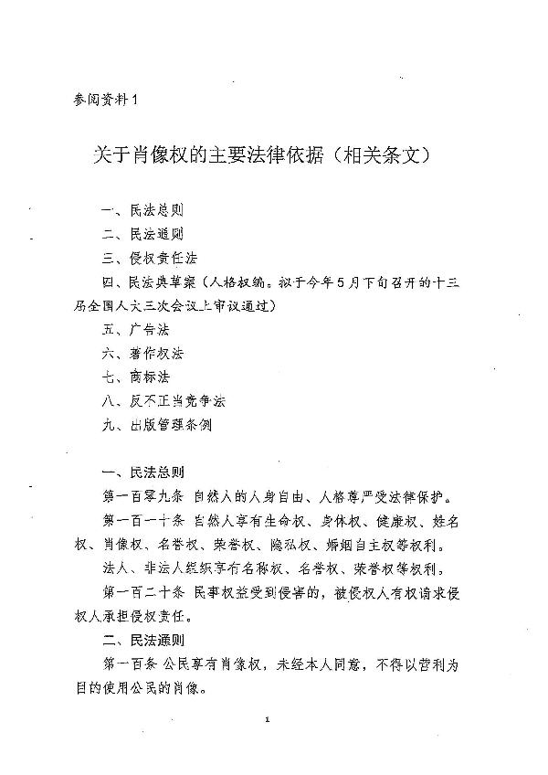 關(guān)于肖像權(quán)的主要法律依據(jù)